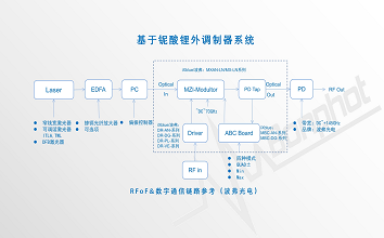 射(shè)頻光纖傳(chuán)輸(RFoF)以及數字通(tōng)信係統(Digital communications)是目前較為常用的通信(xìn)形式,適合於低頻~+400Gbps傳輸應用,具有很大的市場潛力。目(mù)前市麵上RFoF係統,有直接調製激(jī)光器(Directly modulated lasers)、電吸收調製器(Electro-absorption modulator)、铌酸鋰外調製器(Lithium Niobate Mach-Zehnder Modulator)設計方式,相對於直接調製、電吸收調製器較容易收到帶(dài)寬、消光比性能限製,铌酸鋰(lǐ)外調製器方式具有無可比擬的高帶寬、低插(chā)損、高線(xiàn)性等優勢。