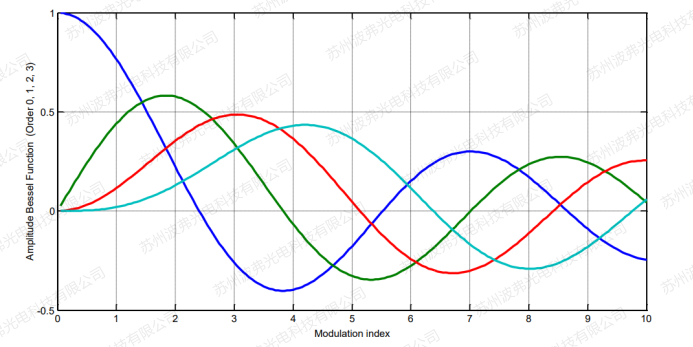 從理論出發(fā),調製(zhì)器輸出電場(chǎng)貝塞爾(ěr)函數如下: