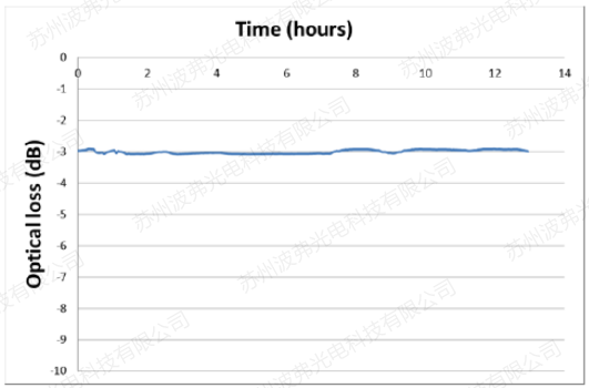 Figure 3 :使用退(tuì)火質子交換工藝的NIR-MX800-LN調製(zhì)器插入損耗隨時間(jiān)的穩定性變化