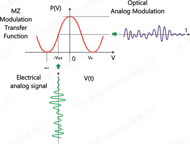一旦工作點(diǎn)選(xuǎn)擇後,並且施加(jiā)合(hé)適的偏置電壓,我們就能夠施加調製RF信號(hào)到調製器的電極上。