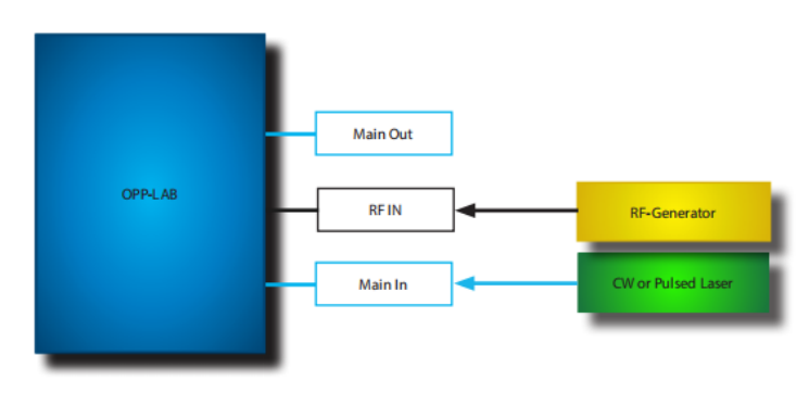 OPP-LAB連接(jiē)到外部激光(guāng)源(激光器)和外部電信號發生器。