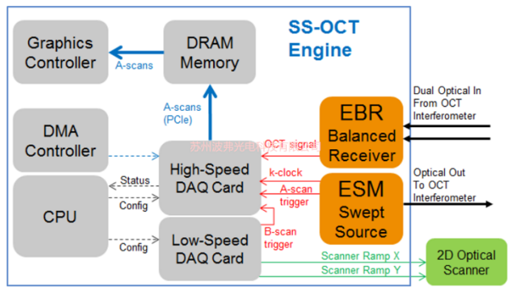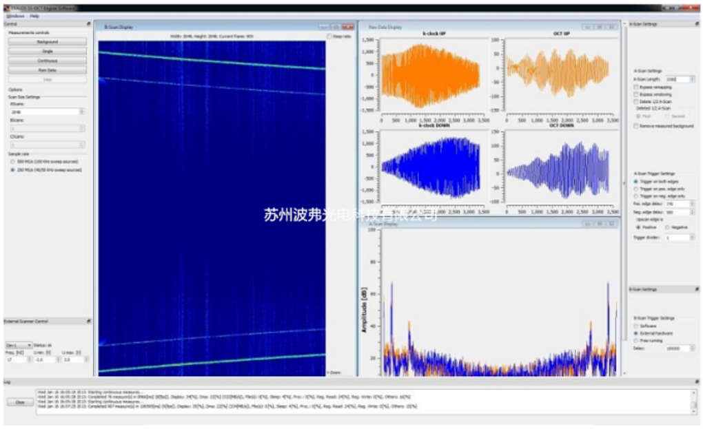 OCT信號處理基於k時鍾信號采集,實(shí)時相位(wèi)展開和先進的線性化算法(fǎ),可實現類似(sì)於使用樣條插值的離(lí)線(xiàn)處理的高質量A掃描。 光譜加窗,色散補償和背景減法是實時獨立進行的,用於前向(xiàng)和後向掃描。 顯示引擎執(zhí)行視頻速率(> 25 fps)顯(xiǎn)示A掃(sǎo)描(每個陣列2,048個點)和B掃描(每(měi)個(gè)B掃描1024個A掃描)。更多產品完整信息(xī),請(qǐng)聯係蘇州国产嫩草影院在线观看88科(kē)技有限公司,聯係電話:0512-62828421,谘詢郵箱:sales@ncdgl.com !
