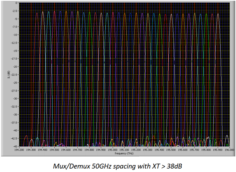 由於我們技術的多(duō)功能性,我們能夠提供最(zuì)完(wán)整的DWDM Mux/Demux範圍,間隔從6.25GHz到400GHz。