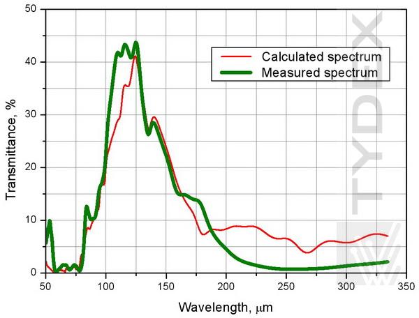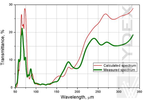 1. TWPC作為半波單色板,適用於80-160μm範圍內的任何波長。TWPC作為120 μm半波片進行了測試。圖1顯示了使用平行偏振器計算和測量的TWPC透射光譜的比較。在120 μm處幾乎為零的透(tòu)射(shè)率證實了在所選波長處的適當偏振轉換。