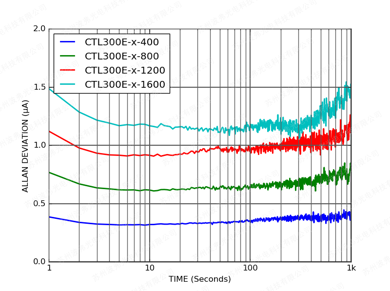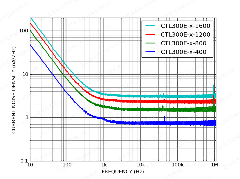 下圖(tú)顯示了CTL300E控製器在額定電流和600 mV激光驅動器(qì)壓降(jiàng)下工作的電流噪聲密度(dù)。