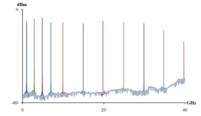 通過光接收器和射頻頻譜分析(xī)儀測量(liàng)的樣本外(wài)差信號(hào)。