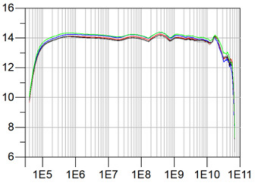 Fig. 7: Typical Gain (dB) vs Linear Frequency (GHz)