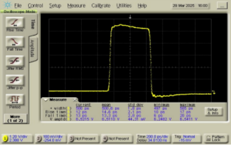 500ps脈寬 @時鍾頻率. 100kHz,輸出電平(píng) 4.6Vpp |