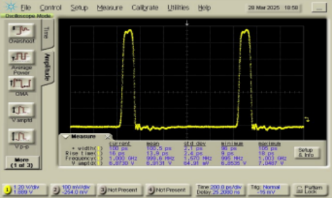 100ps脈寬 @時鍾頻率(lǜ). 1GHz,輸出電平 5.1Vpp |