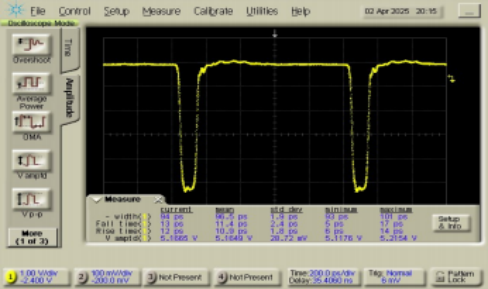 30ps脈寬 @時鍾頻(pín)率. 100kHz,輸出電平 5.2Vpp |
